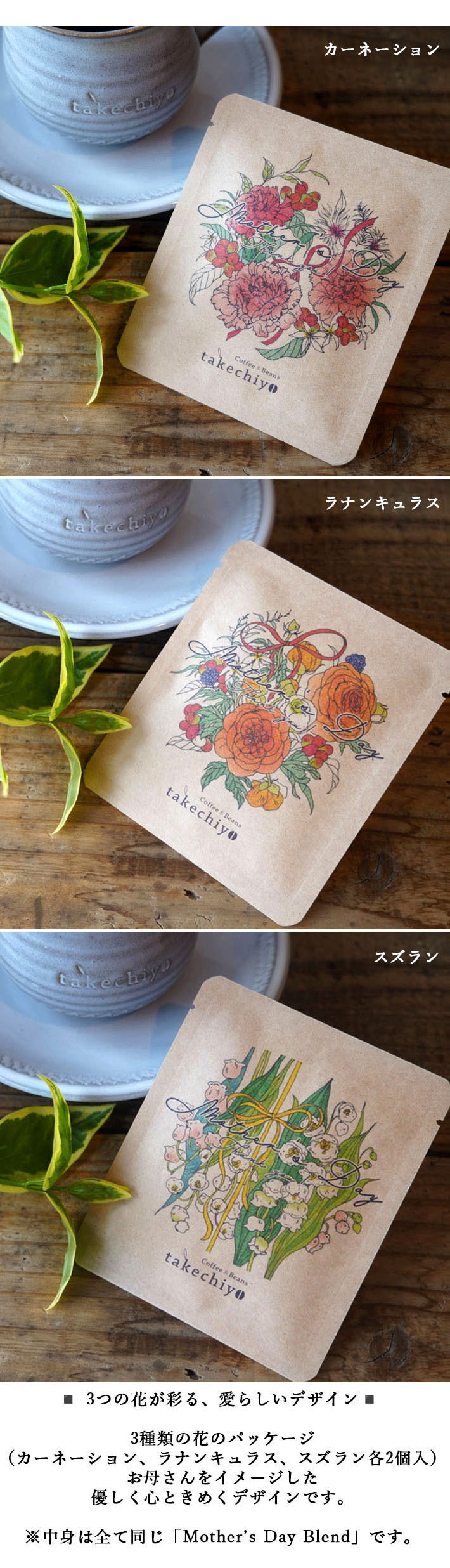 ※中身は全て同じ「Mother’s Day Blend」です。