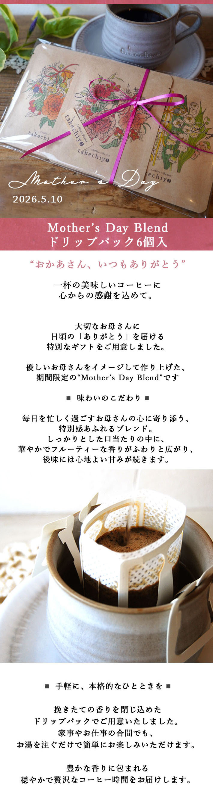 【Mother's Day Blendドリップパック6個入】母の日ギフト プレゼント ドリップバッグ ドリップコーヒー